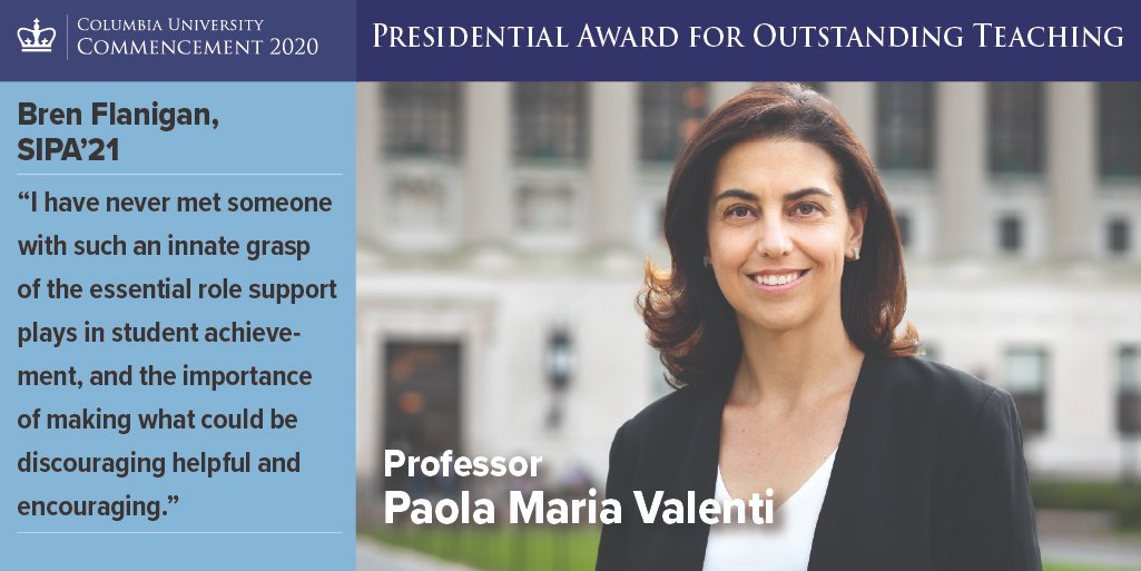 Columbia University On Twitter Congratulations Paola Maria Valenti Senior Lecturer In The Discipline Of International And Public Affairs Columbiasipa Valenti Has Received The 2020 Presidential Award For Outstanding Teaching Https T Co